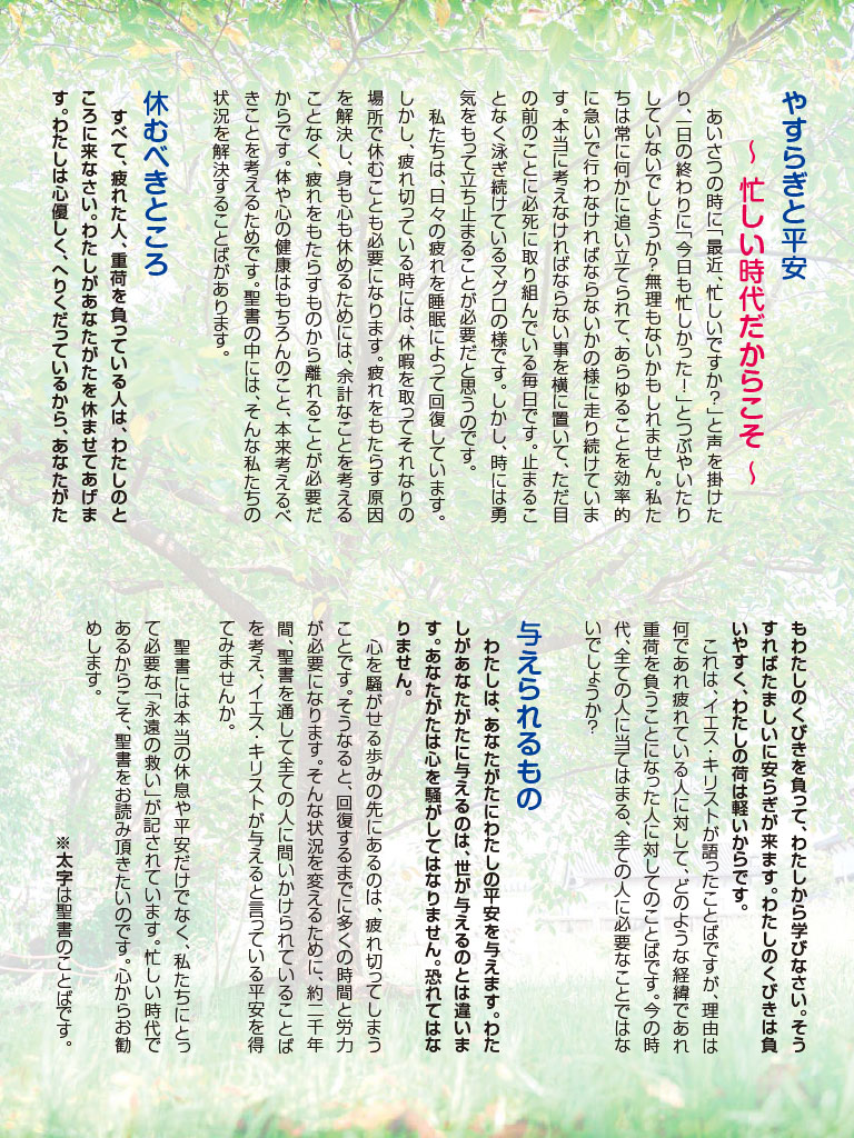 新しいトラクト(やすらぎと平安)を作成しました。